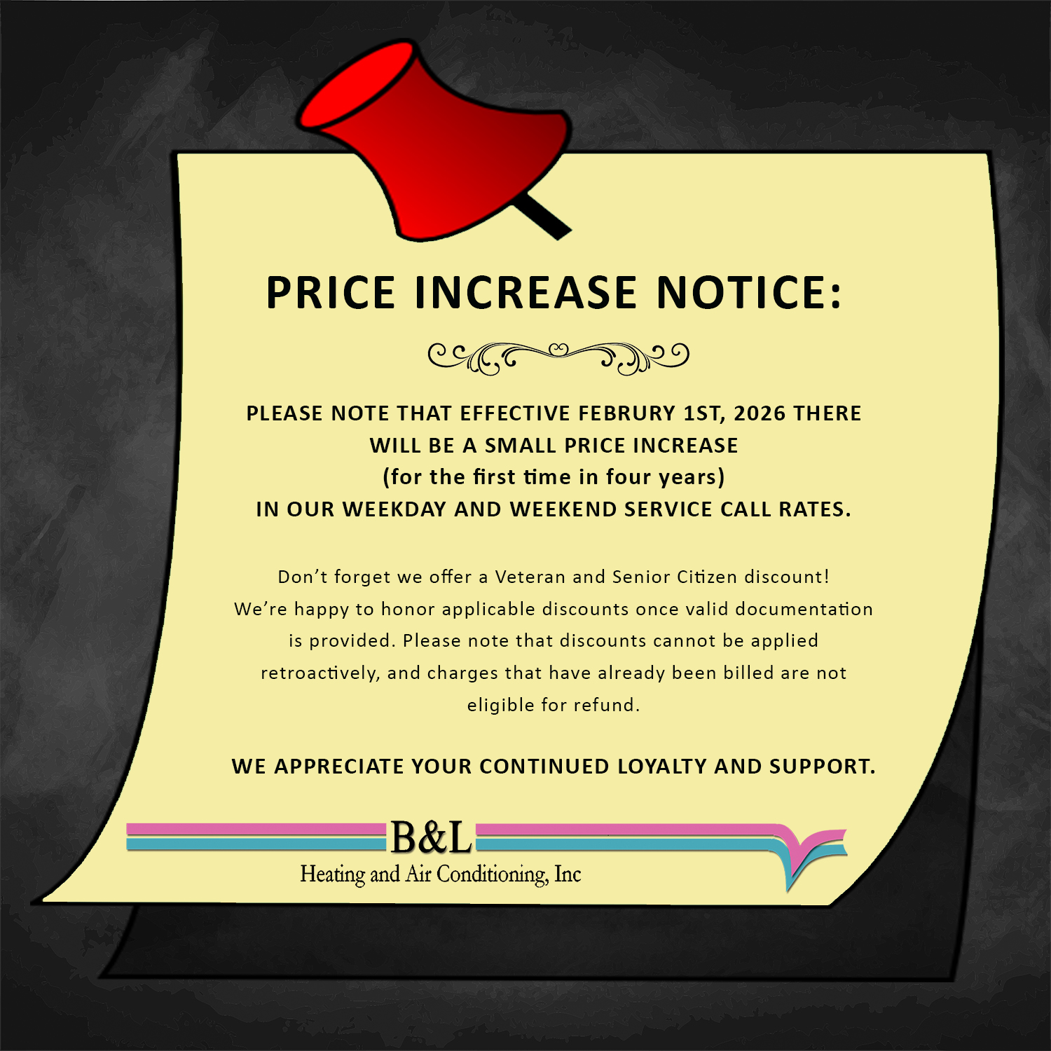 "B&L has been servicing and repairing HVAC systems in my home for many years. The new high efficiency unit installed a few weeks ago works very well. The interior temperature is comfortable and consistent, which was not the case with our old system. It took two days to install the new system because new vent pipe had to be inserted through the roof. Chris and Lane came on time, knew what they were doing and were careful to protect wood floors from damage. They left no mess at all. I'm very pleased, as I always have been, with their work."